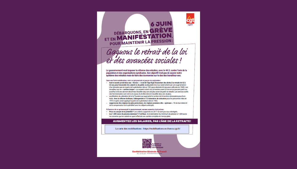 Tract CGT pour appeler à la grève et à la manifestation le 6 juin